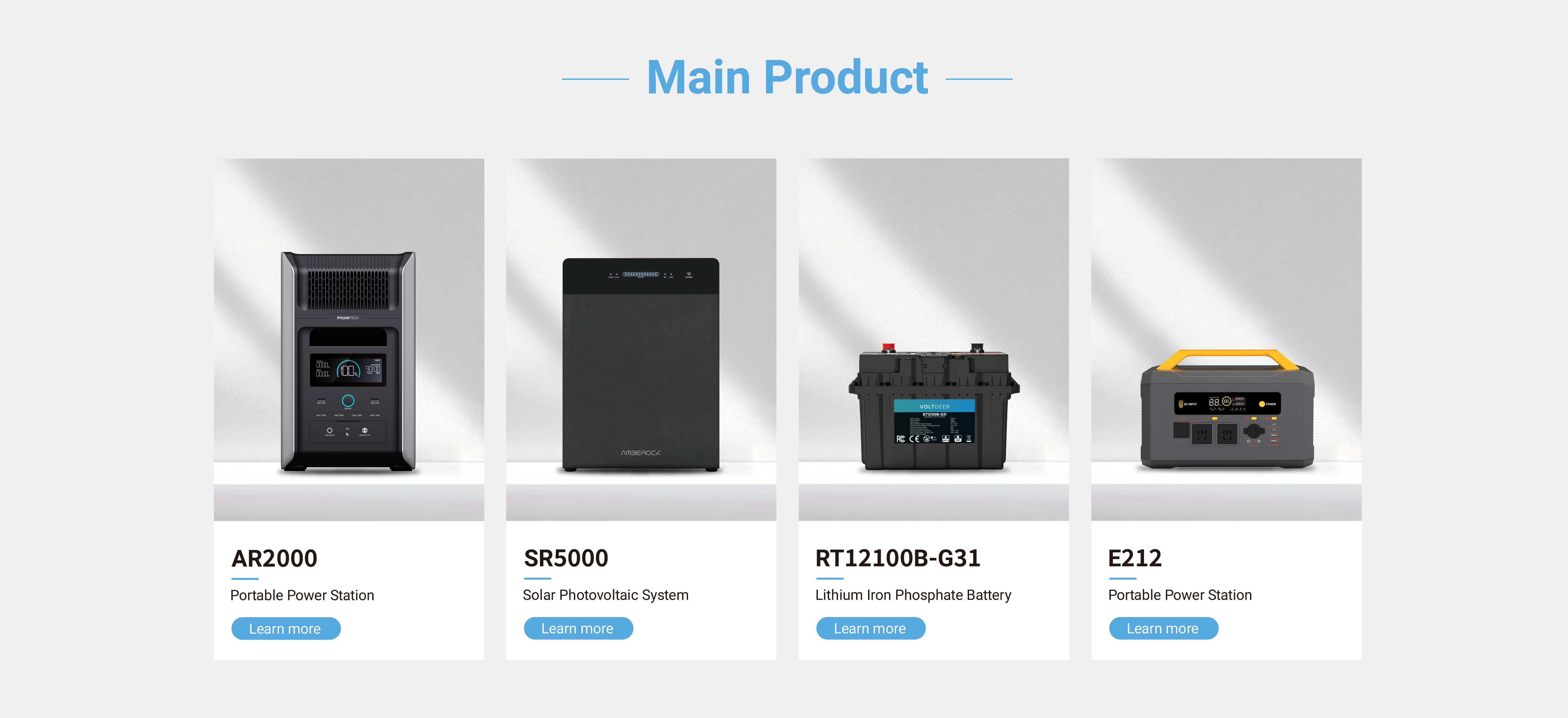 Productos principales:Estación de energía portátil, batería LiFePO4, paquete de baterías de iones de litio, sistema solar de balcón, estación de energía solar